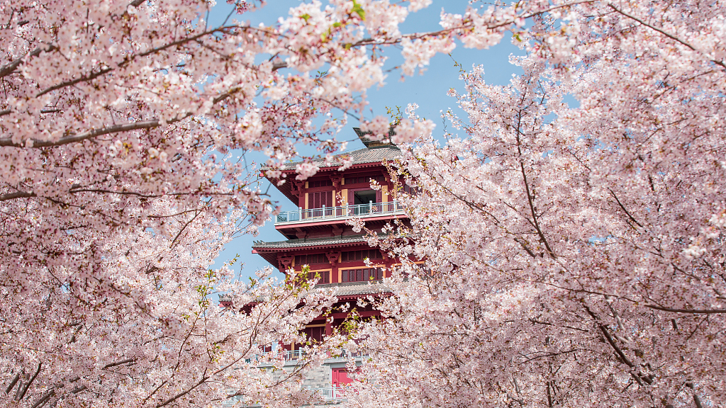 As temperatures rise in large parts of China, cherry blossoms are blooming in many places. Xingyang, a city in central China's Henan Province, has seen pink and white cherry blossoms carpet the banks of the Yellow River. Petals fall gently to the ground like snowflakes amid the spring breeze. Wandering through the sea of flowers and savoring the cherry blossoms in full bloom, people can soak up the spring air and enjoy the glory of the beautiful season.