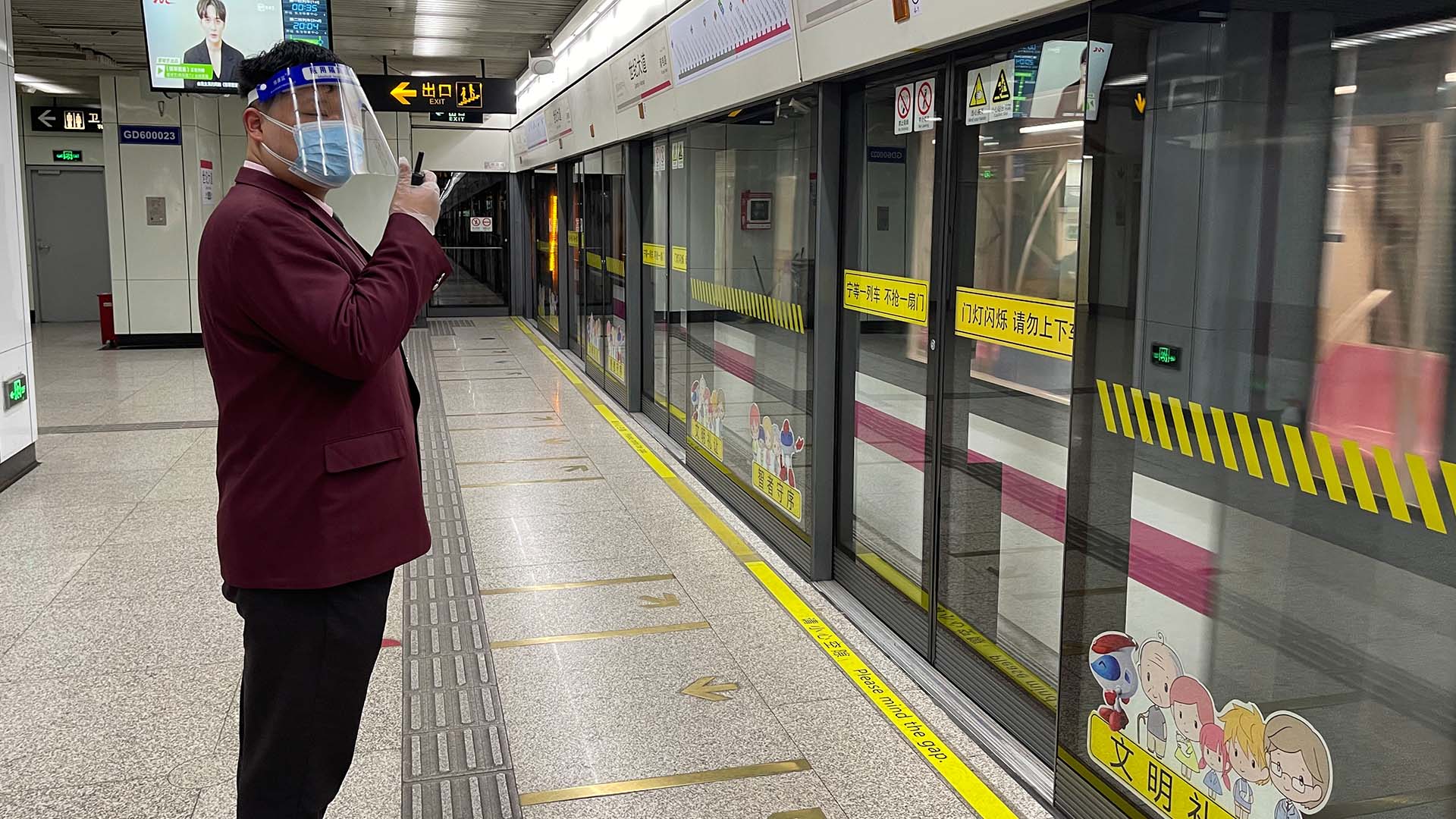 Most of Shanghai's metro lines remain closed amid the new COVID-19 outbreak in the city. Line 6 and Line 16, that run in the city's Pudong District, are still operating but have shortened operating hours, from 7 a.m. to 8 p.m. Sun Ruiyi, on-duty manager at Century Avenue Station which handles the running of Line 6, says passenger flow has dropped dramatically. "Century Avenue Station has transfers to four lines. Normal passenger flow can be more than 600,000 on weekdays. But there were only about 150 passengers in this morning," said Sun, adding that most of the passengers now are elderly people who need medical treatment in nearby hospitals.
