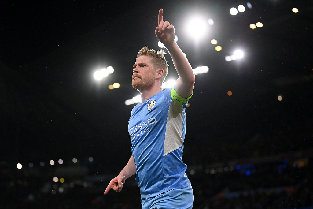 Eight of Kevin De Bruyne's 11 goals in the Champions League have been scored in the knockout stages. /CFP