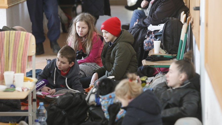 People rest at a temporary settlement site near Mariupol, Ukraine, March 17, 2022. /Xinhua