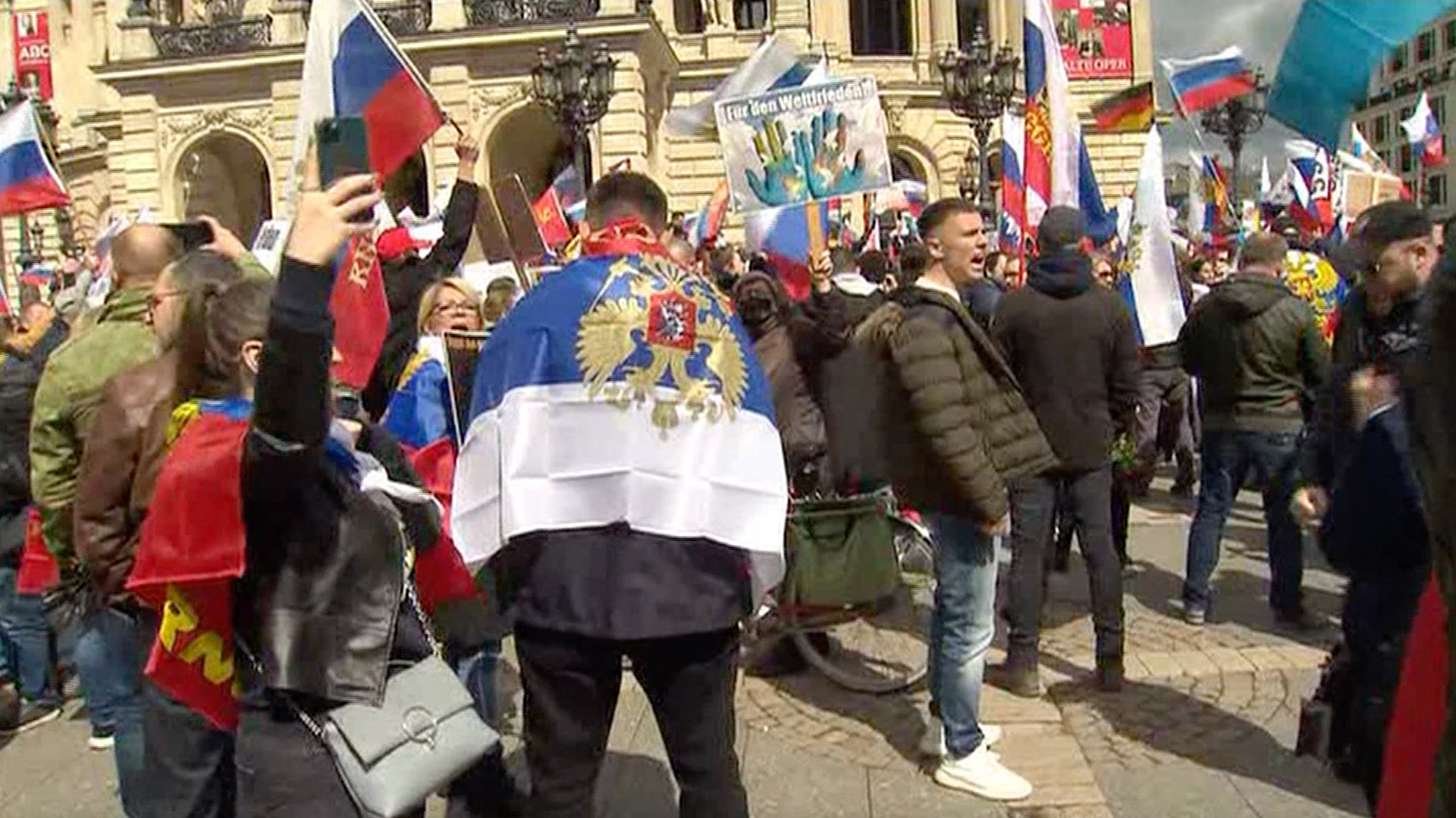 Around 800 pro-Russian demonstrators rallied in Frankfurt, Germany on Sunday, demanding an end to the harassment of the country's Russian-speaking population. In Hanover, nearly 350 vehicles participated in a pro-Russian motorcade, and about 3,500 pro-Ukrainian demonstrators also gathered in the city. The two camps verbally clashed with each other.