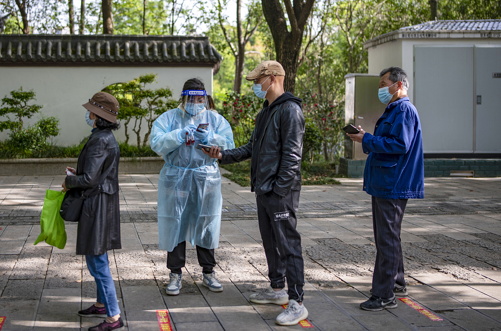 A free nucleic acid testing site at Longquan Park in Jingmen, Hubei Province, April 18, 2022. /CFP