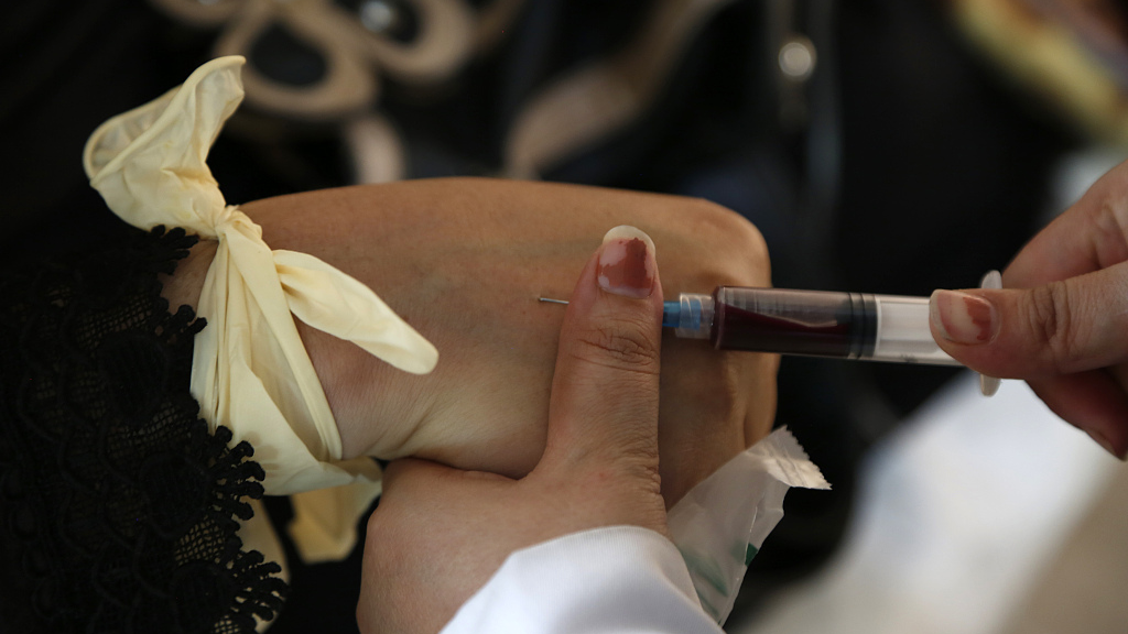 A Yemeni doctor gets blood from a woman who suffers cholera epidemic as she receives treatment at the Sabeen hospital in Sana'a, Yemen, July 09, 2019. /CFP