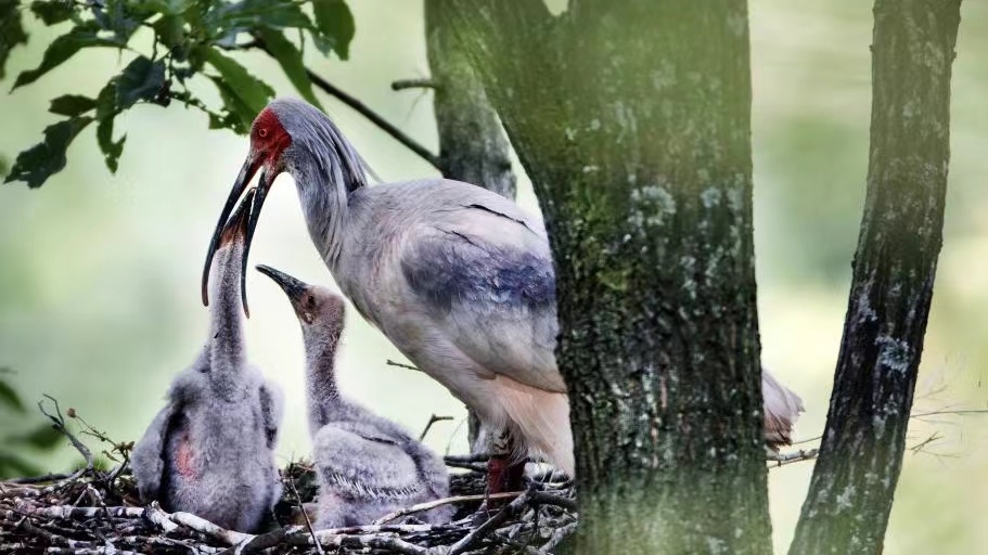 Crested ibis, one of the most endangered species on Earth, has its breeding season from March to June every year. In northwest China's Shaanxi Hanzhong Ibis Nature Reserve, wild crested ibises Zhuzhu and Lulu recently welcomed four newborns. Join CGTN to see how they nurse their hatchlings.