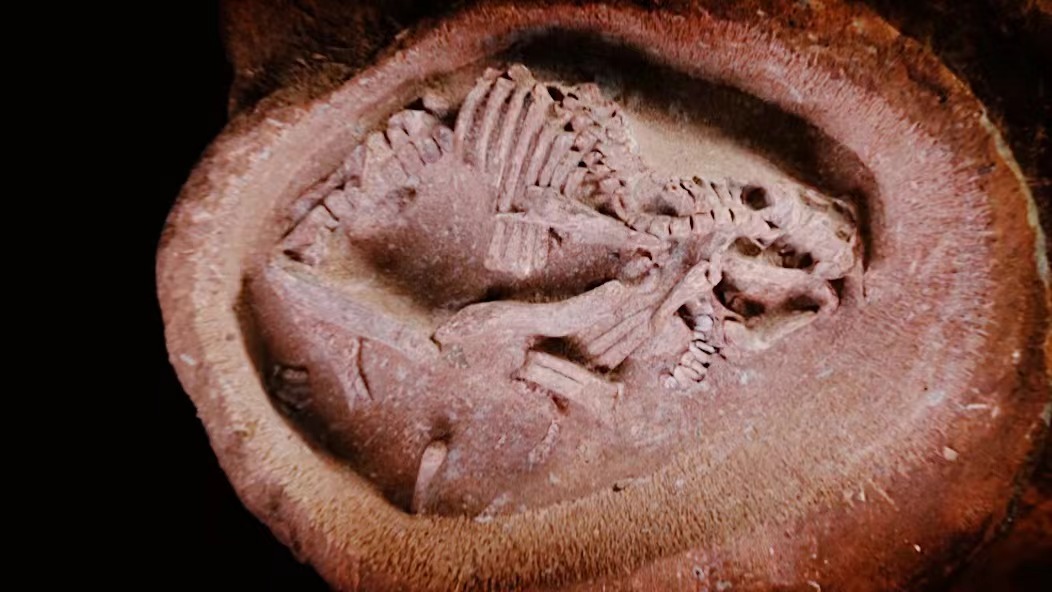 Chinese scientists discovered the most complete hadrosaurus embryo scientifically recorded so far after a detailed study of dinosaur egg fossil specimens. The embryo specimens are kept in a branch of Fujian Science and Technology Museum. The dinosaur egg where the embryo lies takes the shape of an ellipsoid with a length of about 9 centimeters. The egg was found in the Late Cretaceous strata in southern Jiangxi Province, with a history of 66 million to 72 million years. Hadrosaurs were giant herbivorous dinosaurs that lived at the end of the age of dinosaurs. The findings will provide valuable information for studying dinosaur reproductive development, behavior, evolution and paleoecology.