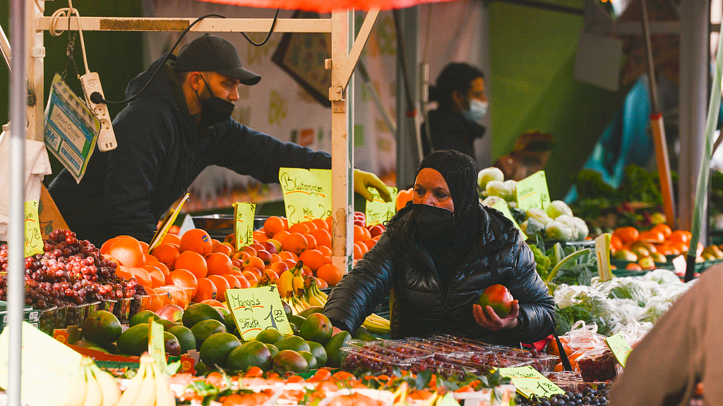 A weekly vegetable market in the city center of Bonn, Germany, February 5, 2022. /CFP