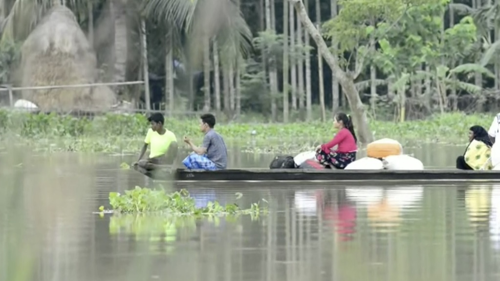 Heavy rains have caused widespread flooding in parts of India, leaving millions stranded and at least 57 dead. At least 100 villages in the Zakiganj region were inundated after floodwater rushing from the country's northeast breached a major embankment on the Barak River. Many parts of Bangladesh and neighboring regions in India are prone to flooding, and experts say climate change is increasing the likelihood of extreme weather events around the world.