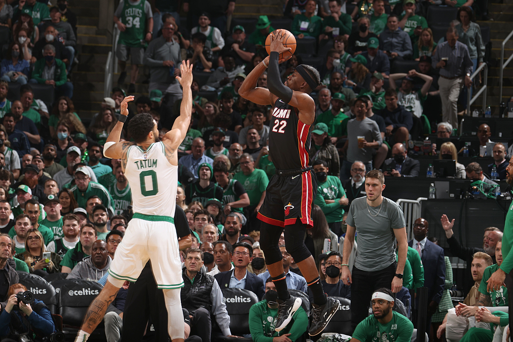 Jimmy Butler (#22) of the Miami Heat shoots in Game 4 of the NBA Eastern Conference Finals against the Boston Celtics at TD Garden in Boston, Massachusetts, May 23, 2022. /CFP