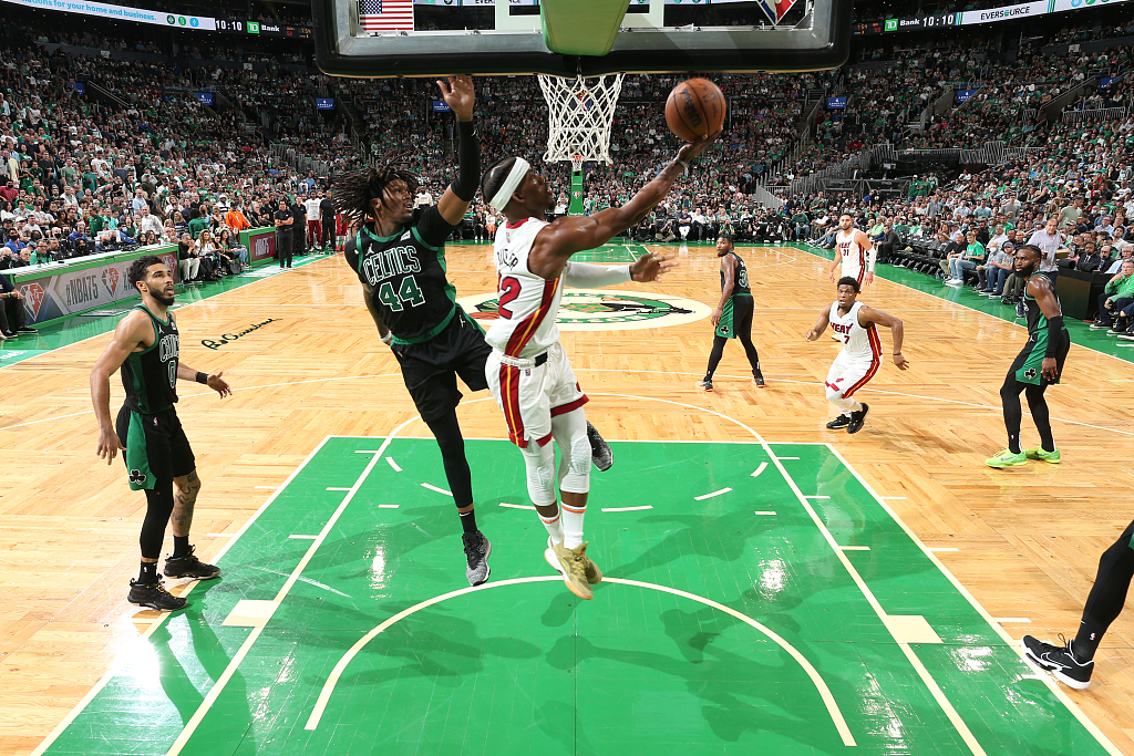 Jimmy Butler (C) of the Miami Heat shoots in Game 6 of the NBA Eastern Conference Finals against the Boston Celtics at TD Garden in Boston, Massachusetts, May 27, 2022. /CFP