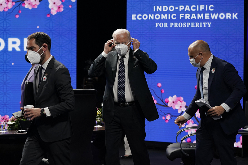 U.S. President Joe Biden puts his mask on after participating in the Indo-Pacific Economic Framework related event at the Izumi Garden Gallery in Tokyo, Japan, May 23, 2022. /CFP