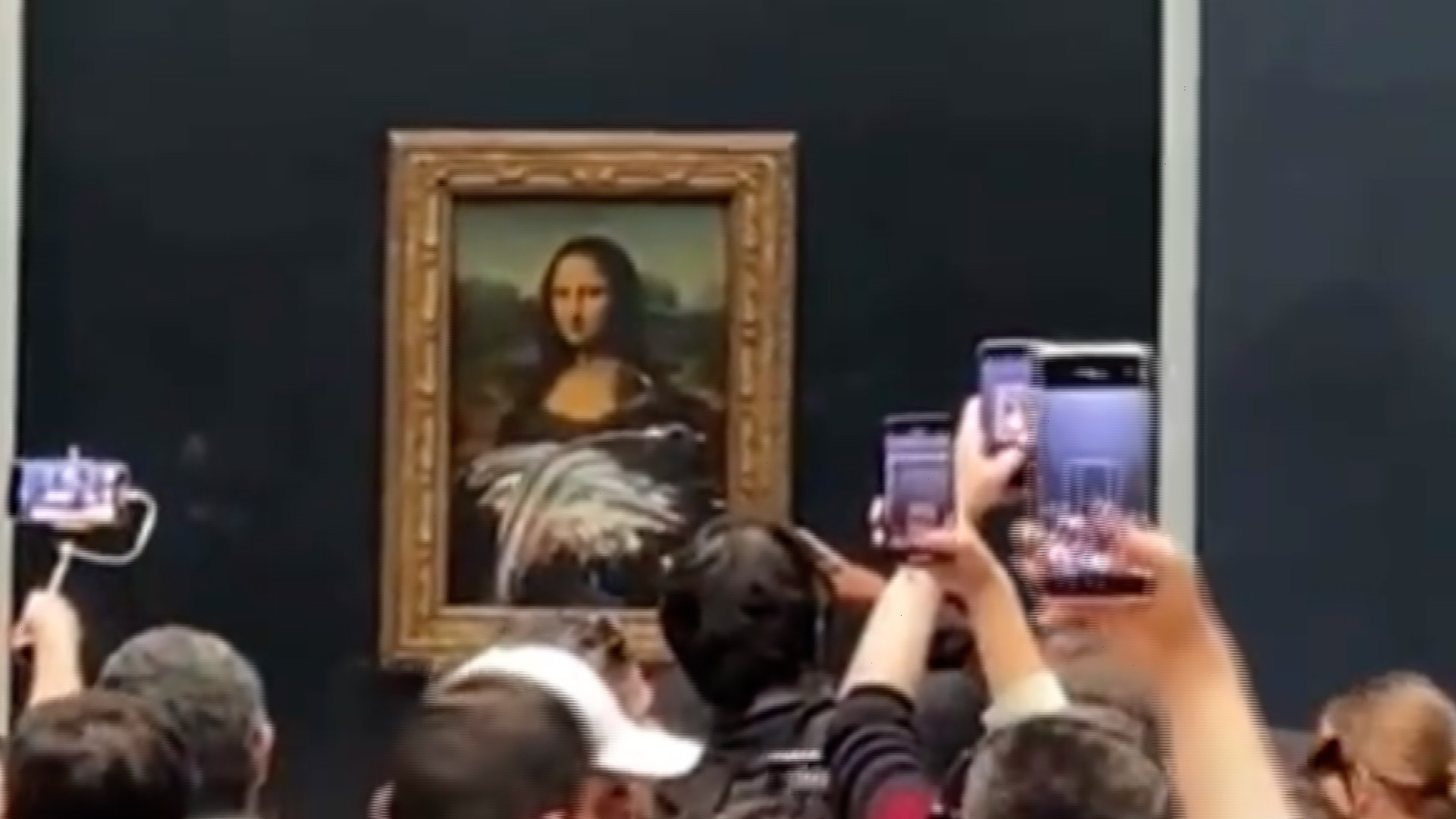 On May 29, a man in a wheelchair wearing a woman's dress and a wig tried to break the bulletproof glass encasing the Mona Lisa at the Louvre Museum in Paris and then proceeded to smear a cream cake on it. Fortunately, the famous artwork was completely unharmed.