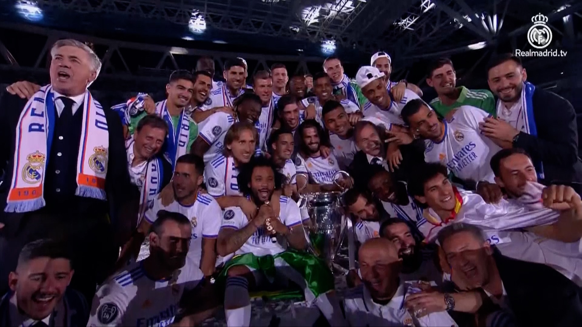 Several thousand Real Madrid fans spent the early hours of Sunday celebrating the club's latest Champions League title in the Spanish capital and a big welcome was planned for the players at the Santiago Bernabéu Stadium later in the day. Fans took to the streets of Madrid and packed the club's traditional celebration spot, Plaza de Cibeles, after Madrid defeated Liverpool 1-0 on Saturday for a record-extending 14th European title. The fans lit up flares and chanted the club's songs and anthem throughout the night.