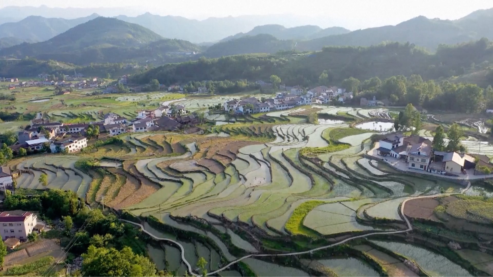 As the summer sowing begins, farmers are busy transplanting rice seedlings at 250-year-old Fengyan Terraces in Hanyin County, northwest China's Shaanxi Province.