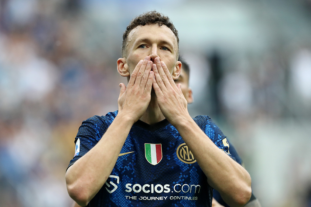 Ivan Perisic acknowledges fans after scoring Inter Milan's first goal during their Serie A clash with Sampdoria at Stadio Giuseppe Meazza in Milan, Italy, May 22, 2022. /CFP