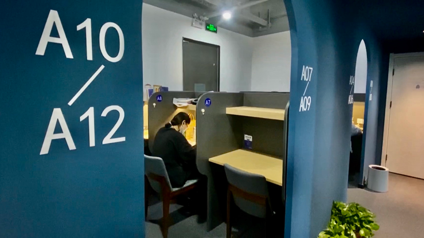 This is a center that provides study rooms for a charge in Taiyuan, capital of north China's Shanxi Province. As libraries and classrooms are often full, many students and those preparing for exams now prefer a place like this. The study room is equipped with central air-conditioning, a ventilation system and an air purifier.