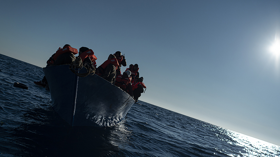 Migrants and refugees on an overcrowded wooden boat in the Mediterranean Sea, January 28, 2022. /CFP