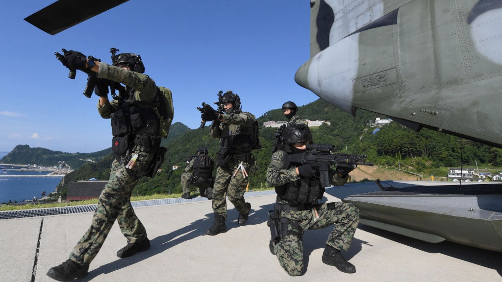 ROK's special army forces participate in a drill on the Dokdo islets (called Takeshima by Japan), August 25, 2019. /Getty