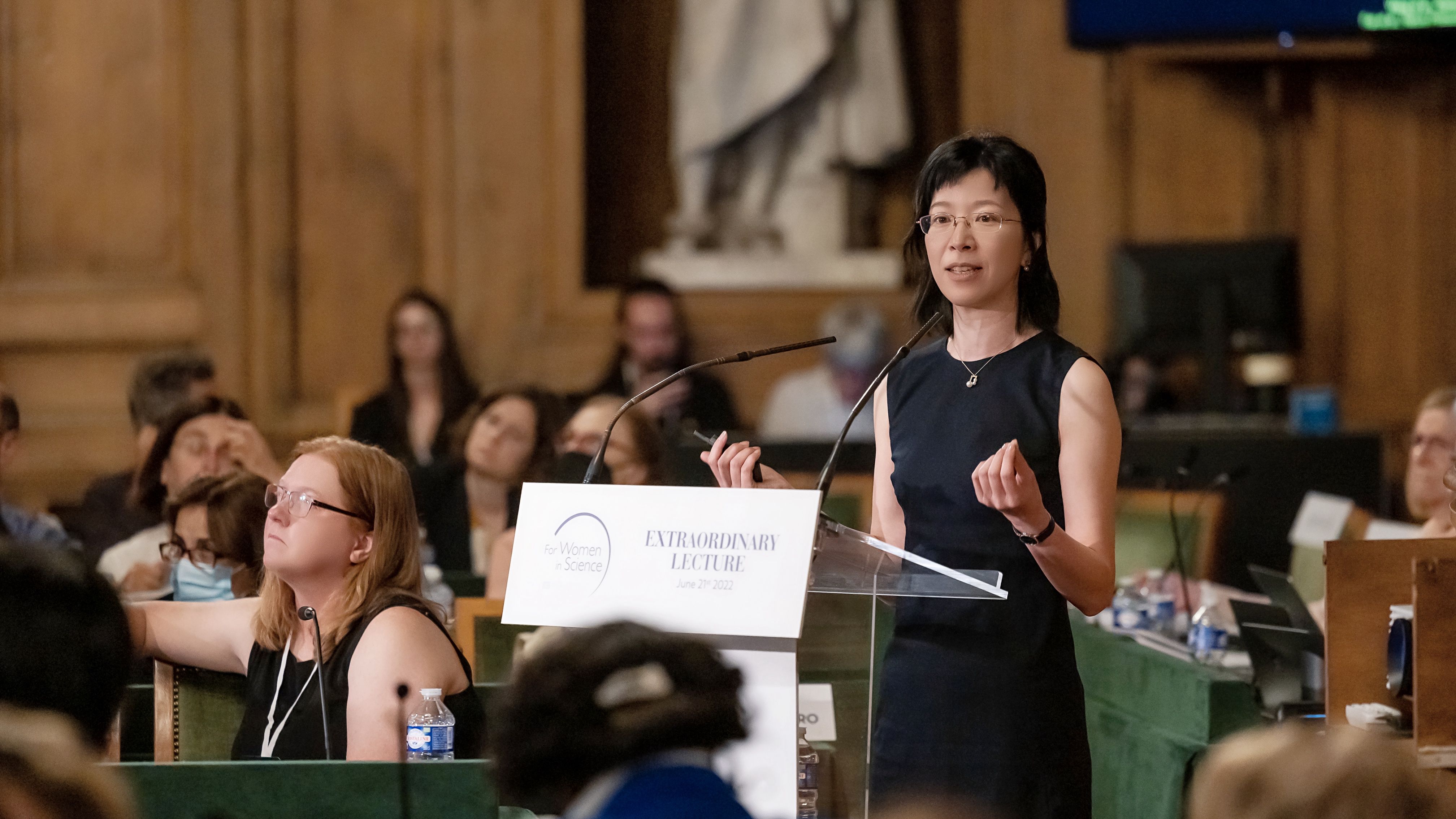 Hu Hailan, laureate of the 2022 L'Oréal-UNESCO For Women in Science International Awards, gives a lecture at the French Academy of Sciences, June 21, 2022. /CGTN
