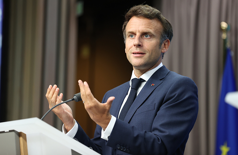 French President Emmanuel Macron speaks at a press conference after EU Leaders' Summit held in Brussels, Belgium, June 23, 2022. /CFP