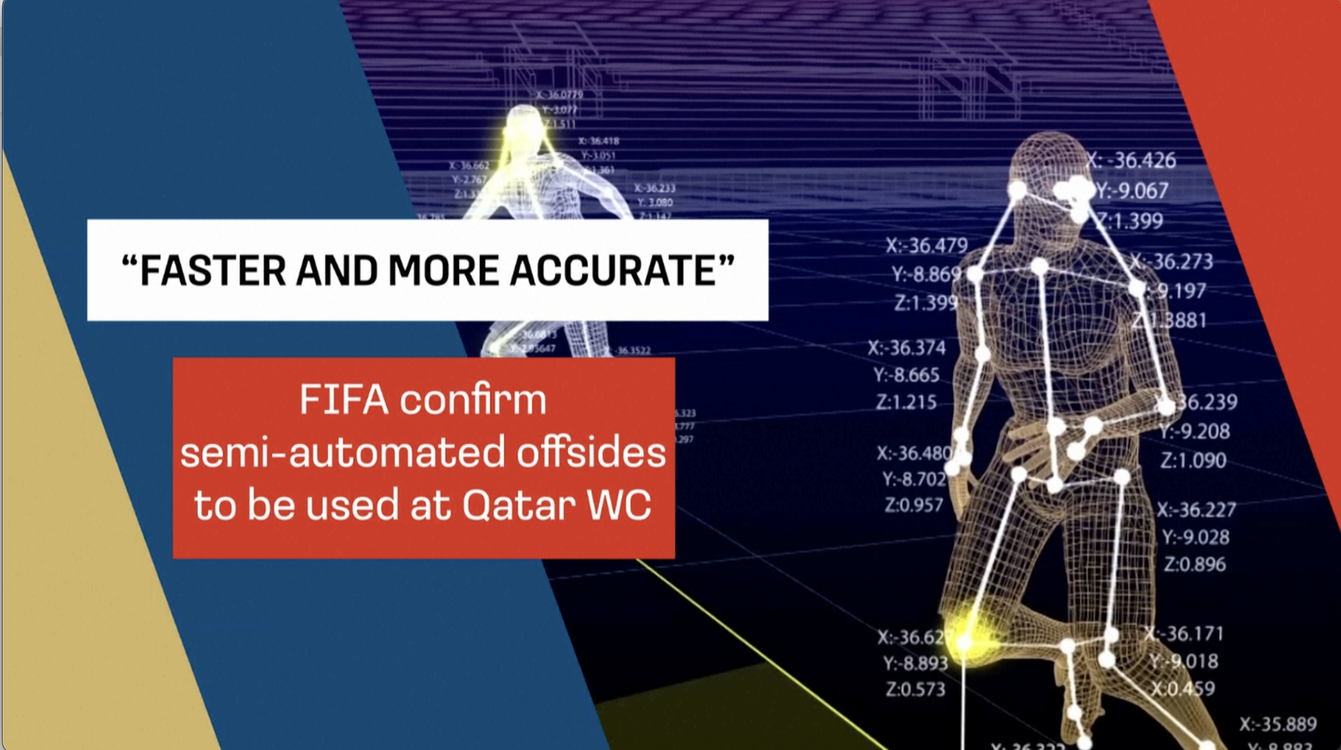 FIFA has announced that semi-automated offside technology will be used at the 2022 World Cup in Qatar starting in November. The technology, which was demonstrated in 2019 after a "very thorough" consultation and testing process, has already been trialled at the FIFA Arab Cup and Club World Cup last year.