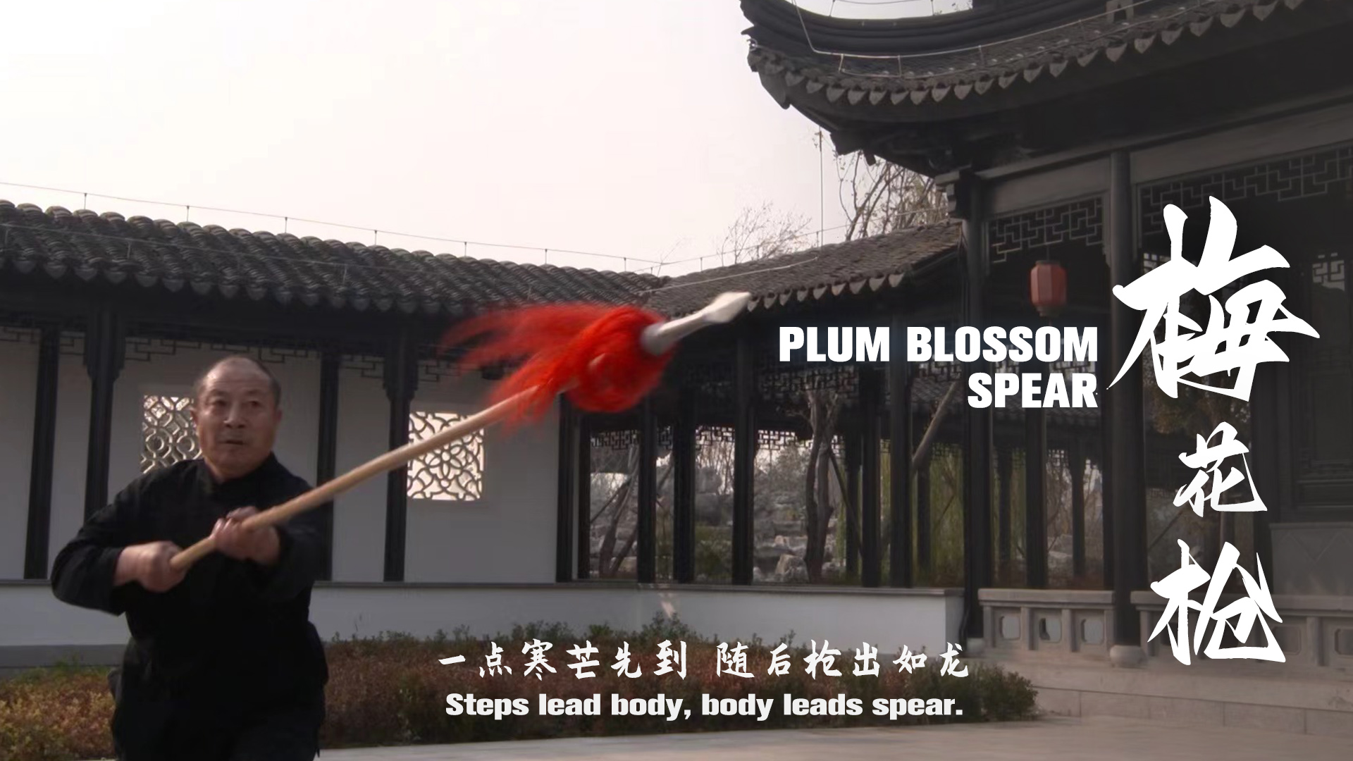The Plum Blossom Spear is the representative weapon of the Plum Blossom Quan. It requires sheer force at the tip of the spear and a smooth wield. The body should be agile and the spear fast. The steps lead the body, and the body leads the spear.
