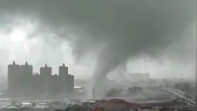 Typhoon Chaba hit at around 5:30 p.m. on Saturday near Xiqiao Town, south China's Guangdong Province. It lasted two to three minutes, with a damaged path of about 1.2 kilometers and a width of about 160 meters, leaving behind broken tree branches along with damaged factory sheds and streetlights. No casualties have been reported so far.