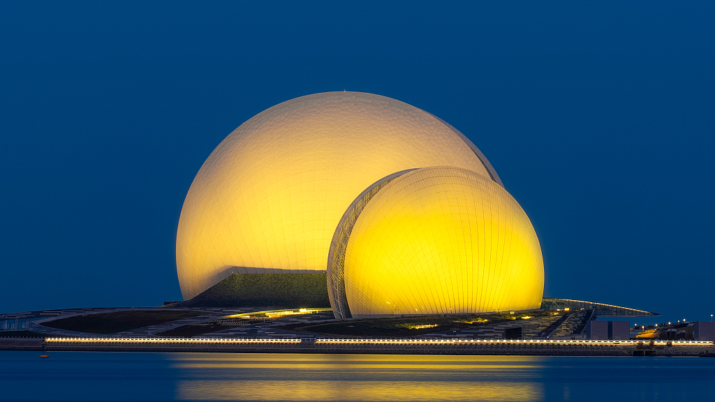 Rising out of the Yeli Island in the city of Zhuhai, south China's Guangdong Province, Zhuhai Grand Theater is the only opera house built on an island in the country. Designed in the shape of two shells, the city landmark covers a construction area of 59,000 square meters. Join CGTN for a virtual view of the landmark.