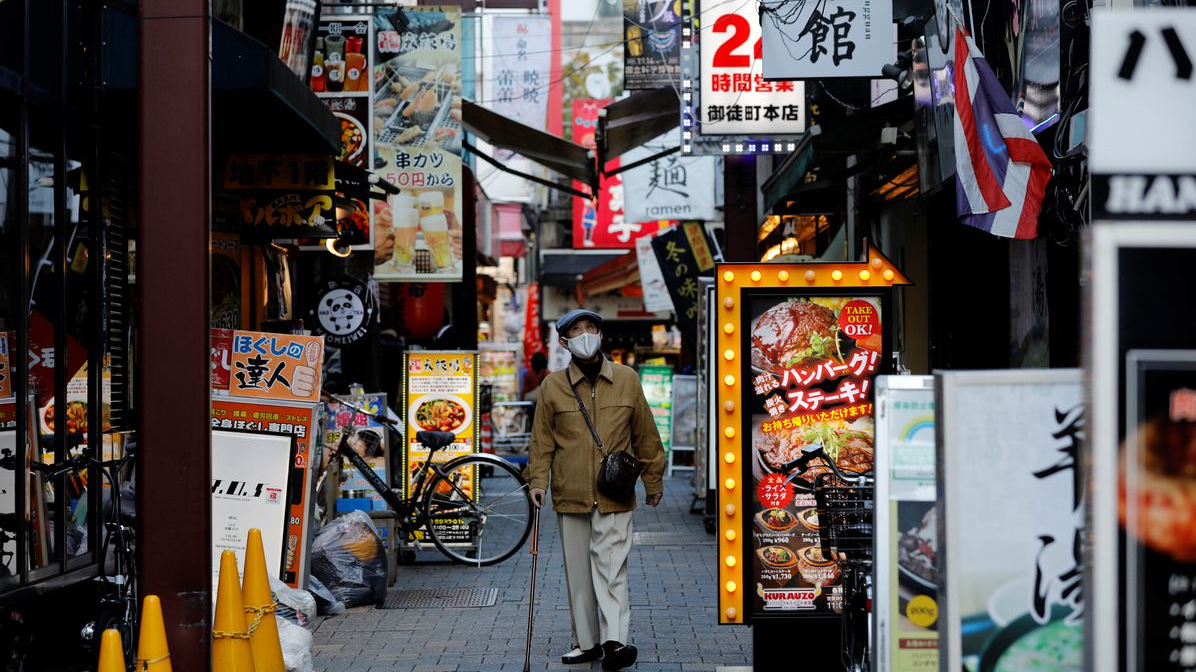 A man wearing a protective mask, amid the COVID-19 outbreak, makes his way at a restaurant district in Tokyo, Japan, December 1, 2021./ Reuters