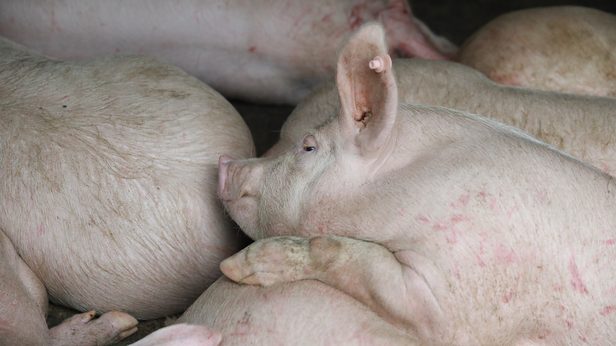 Pigs in a slaughterhouse in Dongguan, Guangdong Province, China, January 22, 2021. /CFP