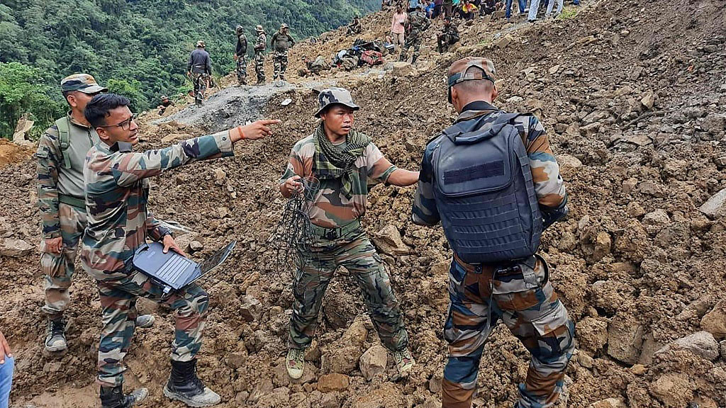 The death toll from a landslide in Manipur, India has risen to 48, and officials say 14 people are still missing. The landslide triggered by heavy rain hit a railway construction camp near the state capital after midnight on June 29. Most victims are military personnel as the landslide also hit a nearby army camp. Rescue operations are underway.