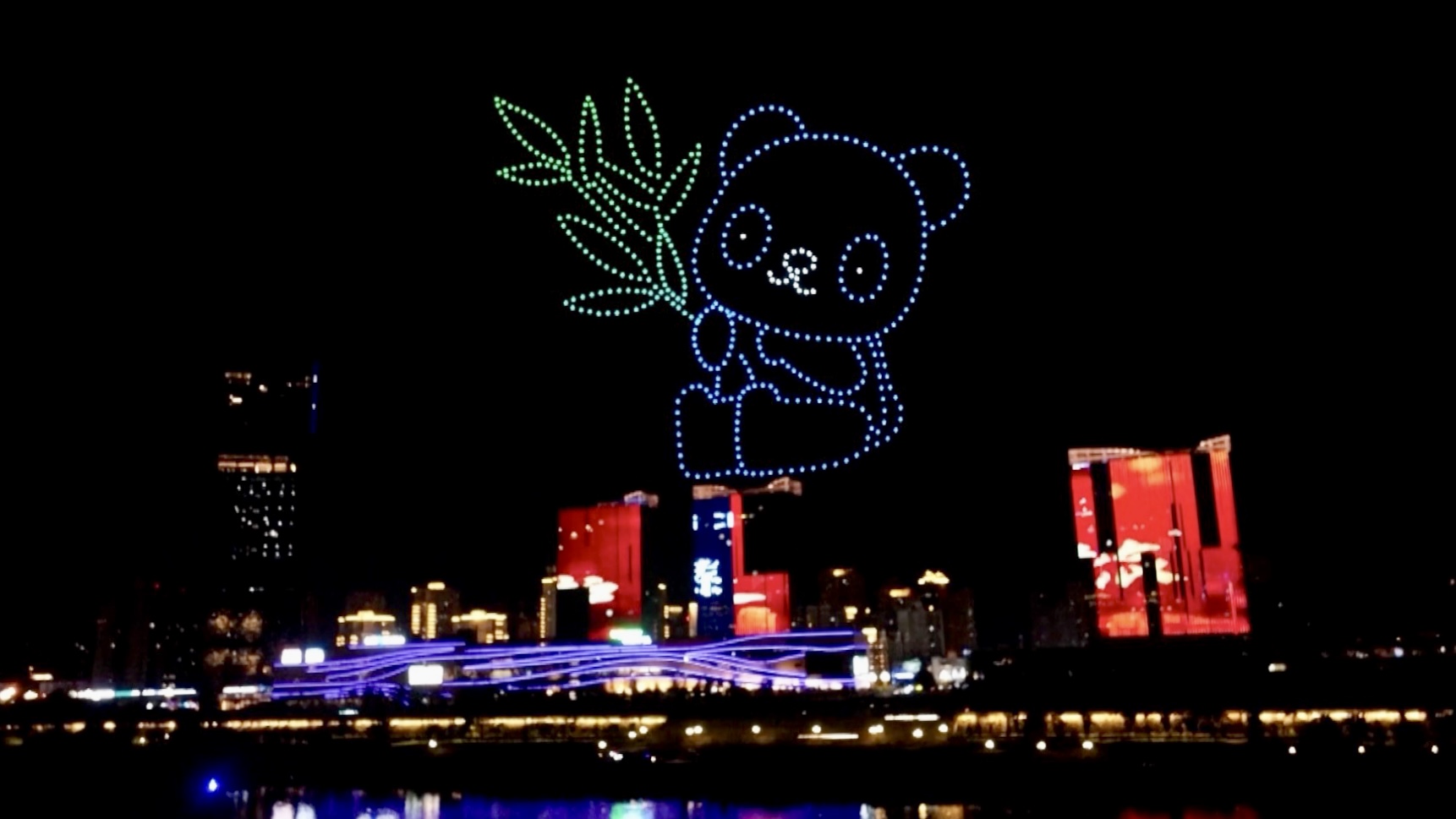 A drone fleet staged a spectacular light show in Nanchong City, southwest China's Sichuan Province, on Monday evening to welcome the opening ceremony of the 2022 Sichuan International Cultural Tourism Festival. A total of 500 unmanned aerial vehicles were used to present a special light and music show along the Nanchong section of the Jialing River. The drone fleet continuously changed its formation and color to compose different patterns with local characteristics in the night sky. The festival will be held from July 21 to 22 in Nanchong City.