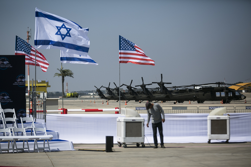 A man takes part at the final rehearsal for the ceremony to welcome U.S. President Joe Biden a head of his visit to Israel on July 12, 2022 in Lod, Israel. /CFP