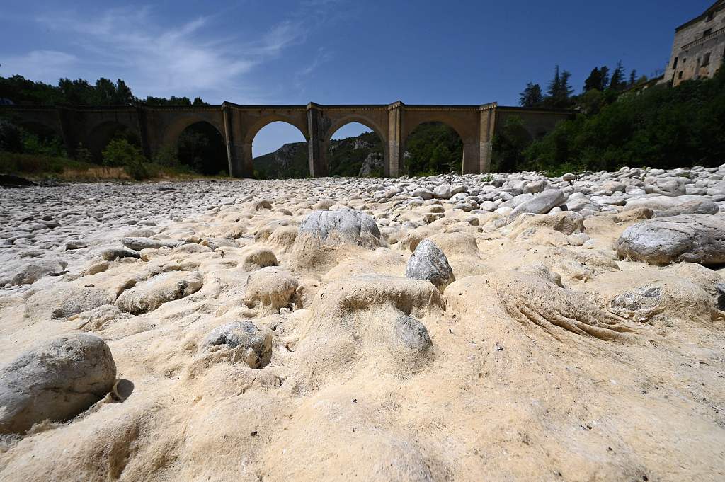 The parched river bed of the Gardon near Nimes, southern France, after a heat wave hit France, June 20, 2022. /CFP