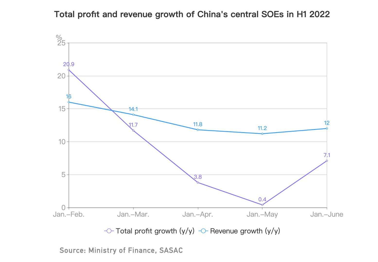 According to the SASAC, operating profit margin of central SOEs was at a relatively high level and the ratio of liabilities to assets remained stable in the first half of the year.