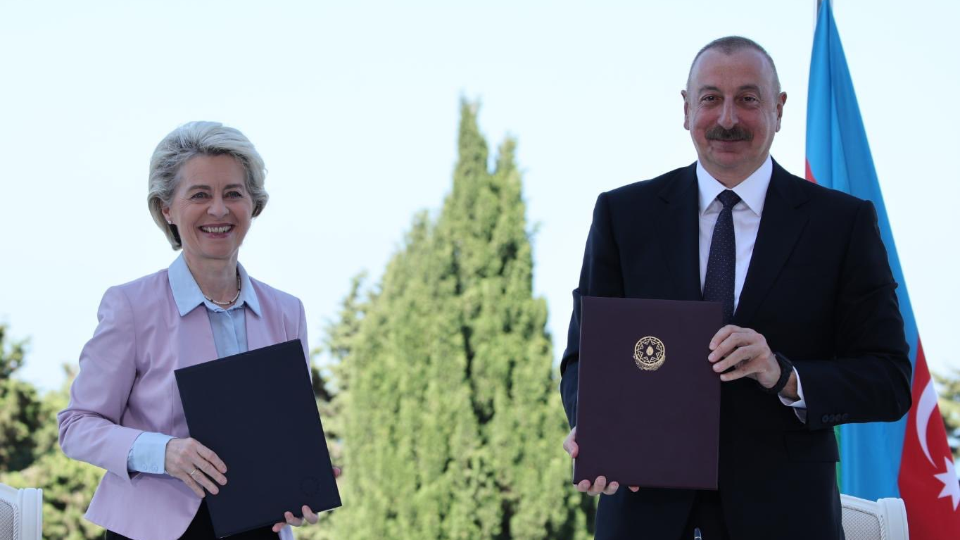 President of the European Commission Ursula von der Leyen and Azerbaijani President Ilham Aliyev sign a new Memorandum of Understanding on a Strategic Partnership in the Field of Energy in Baku, Azerbaijan, July 18, 2022. /Von der Leyen's Twitter