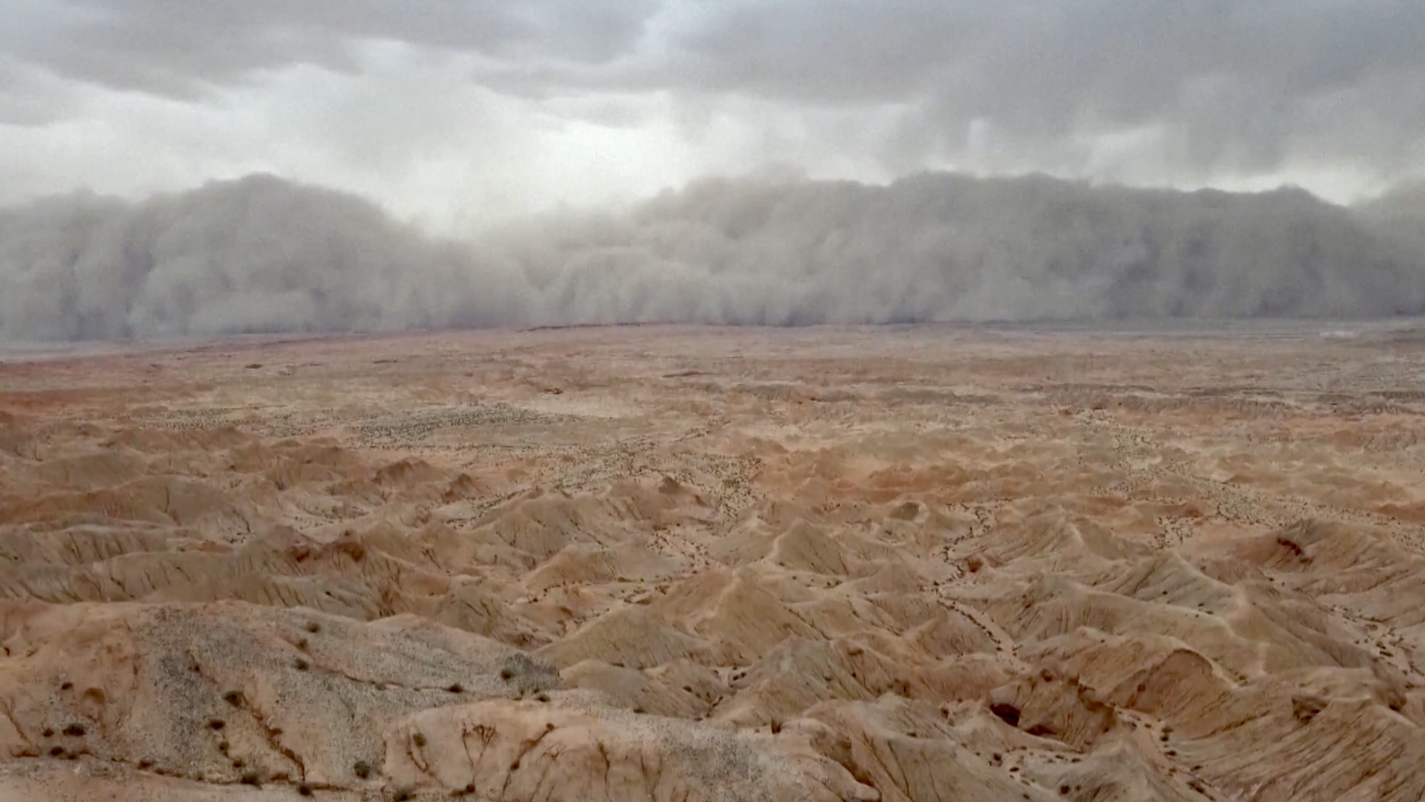 A heavy sandstorm hit the Haixi Mongolian and Tibetan Autonomous Prefecture of northwest China's Qinghai Province on Wednesday, reducing visibility to less than 200 meters in some regions. The sandstorm traveled from west to east, and gradually built up to a strong dust storm by 19:00. The maximum wind speed was 14.9 meters per second. Visibility was reduced to 181 meters in the most heavily affected areas. Traffic slowed down considerably in many areas.