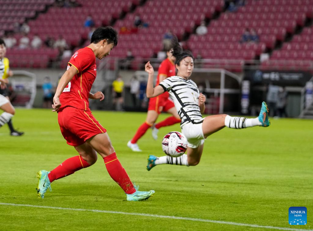 China drew against South Korea in their second game at the East Asian Football Championship women's tournament in Japan on Saturday. South Korea scored first at the 34th minute but China tied the score at the 76th minute ending as a draw.