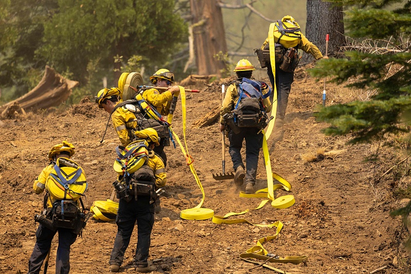 The northward direction of the fire was taking it into the Sierra National Forest but no longer in the direction of Yosemite, some 10 miles away. A grove of Yosemite's giant, ancient sequoia trees did come under threat from another wildfire weeks ago.
