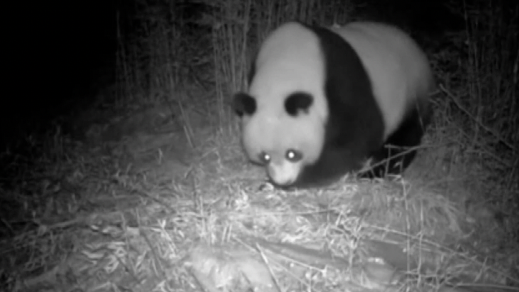An infrared camera captured a wild panda's movement at the Giant Panda National Park in Longnan, northwest China's Gansu Province.