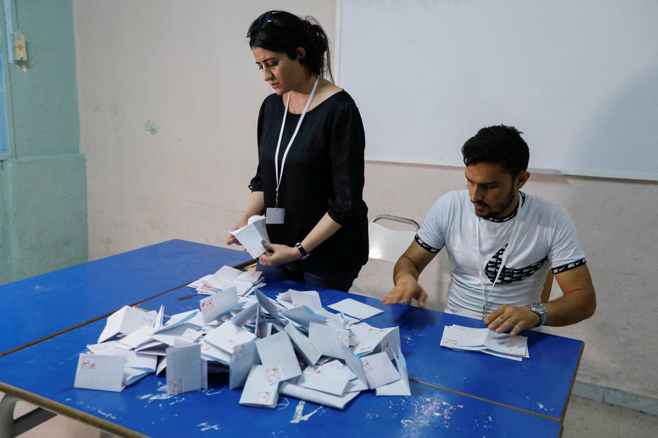 Members of the election committee count votes at a polling station during a referendum on a new constitution in Tunis, Tunisia, July 25, 2022. /Reuters