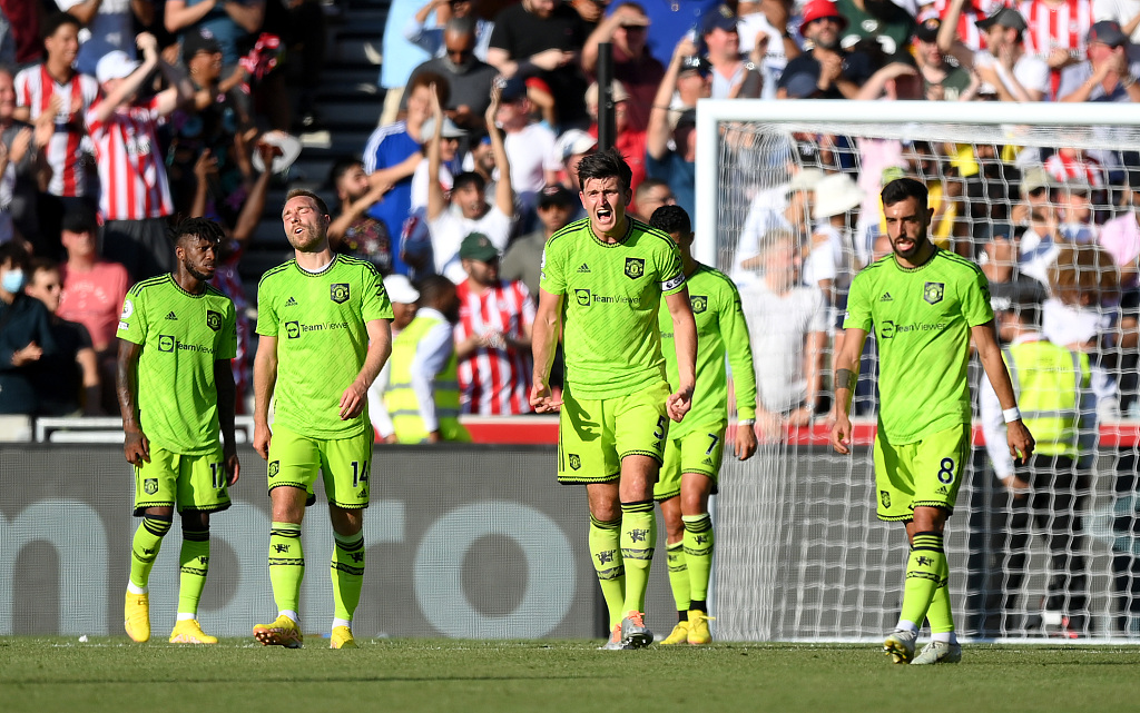 Manchester United players lose to Brentford at Brentford Community Stadium in Brentford, England, August 13, 2022. /CFP