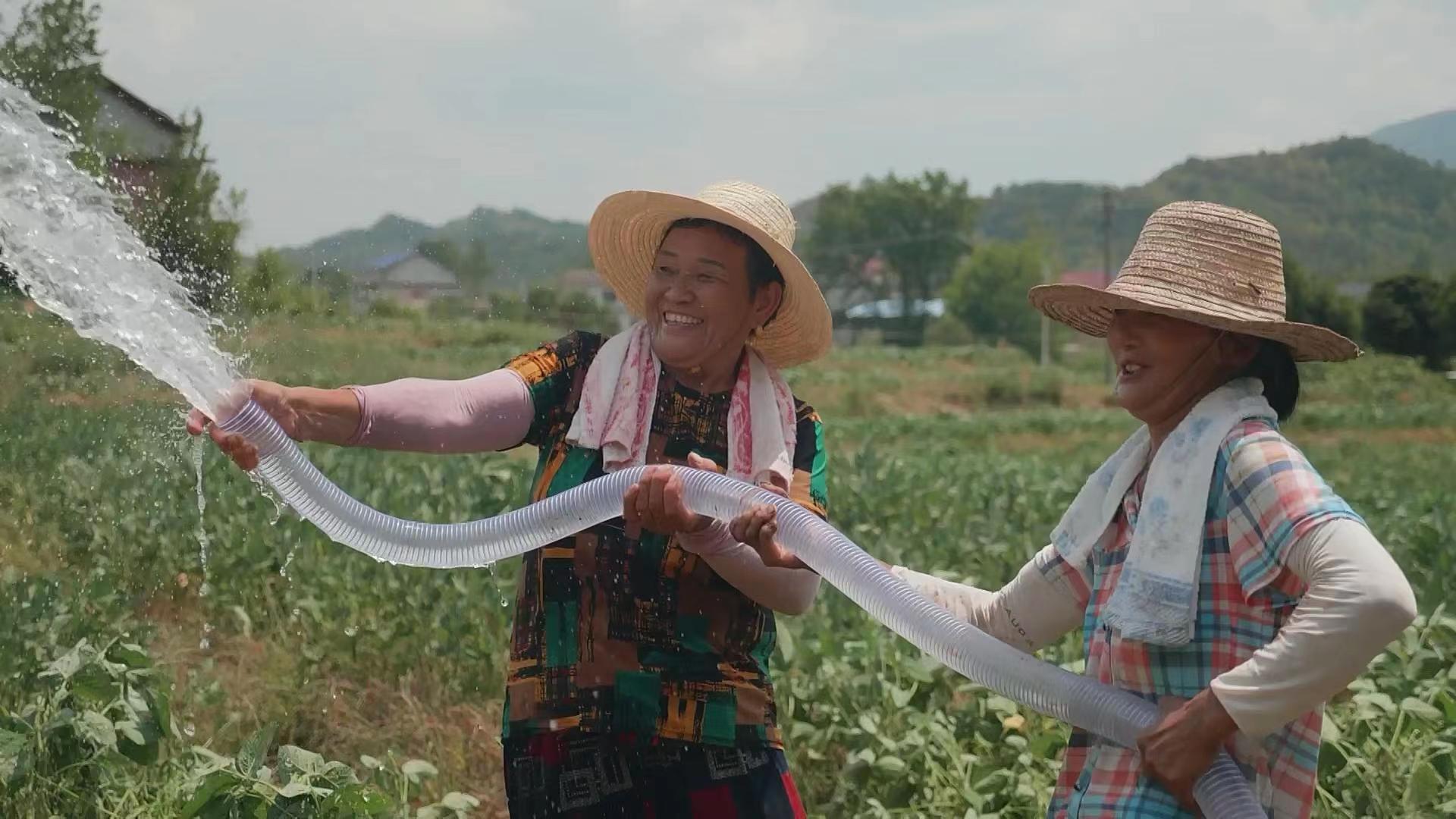 Farmers in Dongyuan Village are watering the plants with the pumped water.