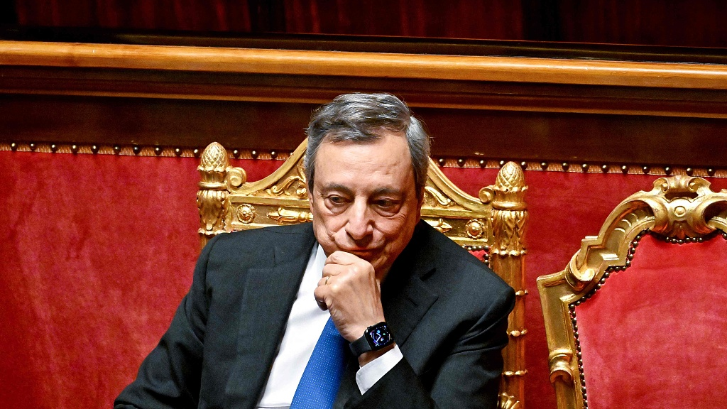 Italy's Prime Minister Mario Draghi looks on during the debate on the government crisis following his resignation the week before, at the Senate in Rome, July 20, 2022. /CFP
