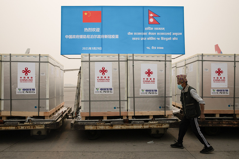 COVID-19 vaccines delivered by China to Nepal arrive at Nepal Tribhuvan International Airport in Kathmandu, capital of Nepal, March 29, 2021. /CFP