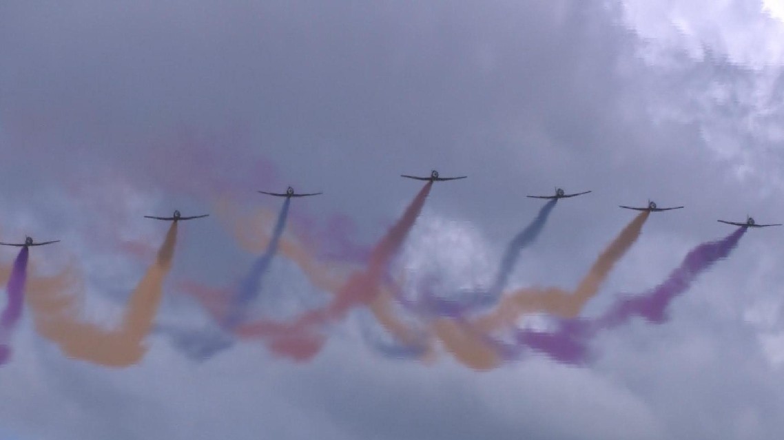 China's Sky Wing Air Demonstration Team on Saturday amazed the audience with its stunning aerobatic skills at the ongoing Changchun Air Show. The event, scheduled to last until August 30, features flight performances of some new aircraft of different types in active service with China's People's Liberation Army (PLA) Air Force, such as the J-20 fighter jet and the Y-20 transport plane, as well as achievements of the PLA Air Force over the past 10 years.