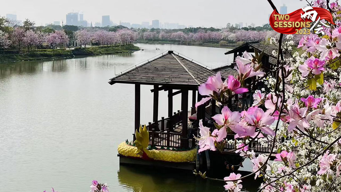 In the city of Guangzhou, the Bauhinia variegata is in full bloom as spring and the breeze settle in. Scattered across a 3.2-kilometer path throughout parts of Haizhu National Wetland Park, these pink and white flowers create a dreamy atmosphere for tourists coming to have a glimpse of the feather-like flowers.