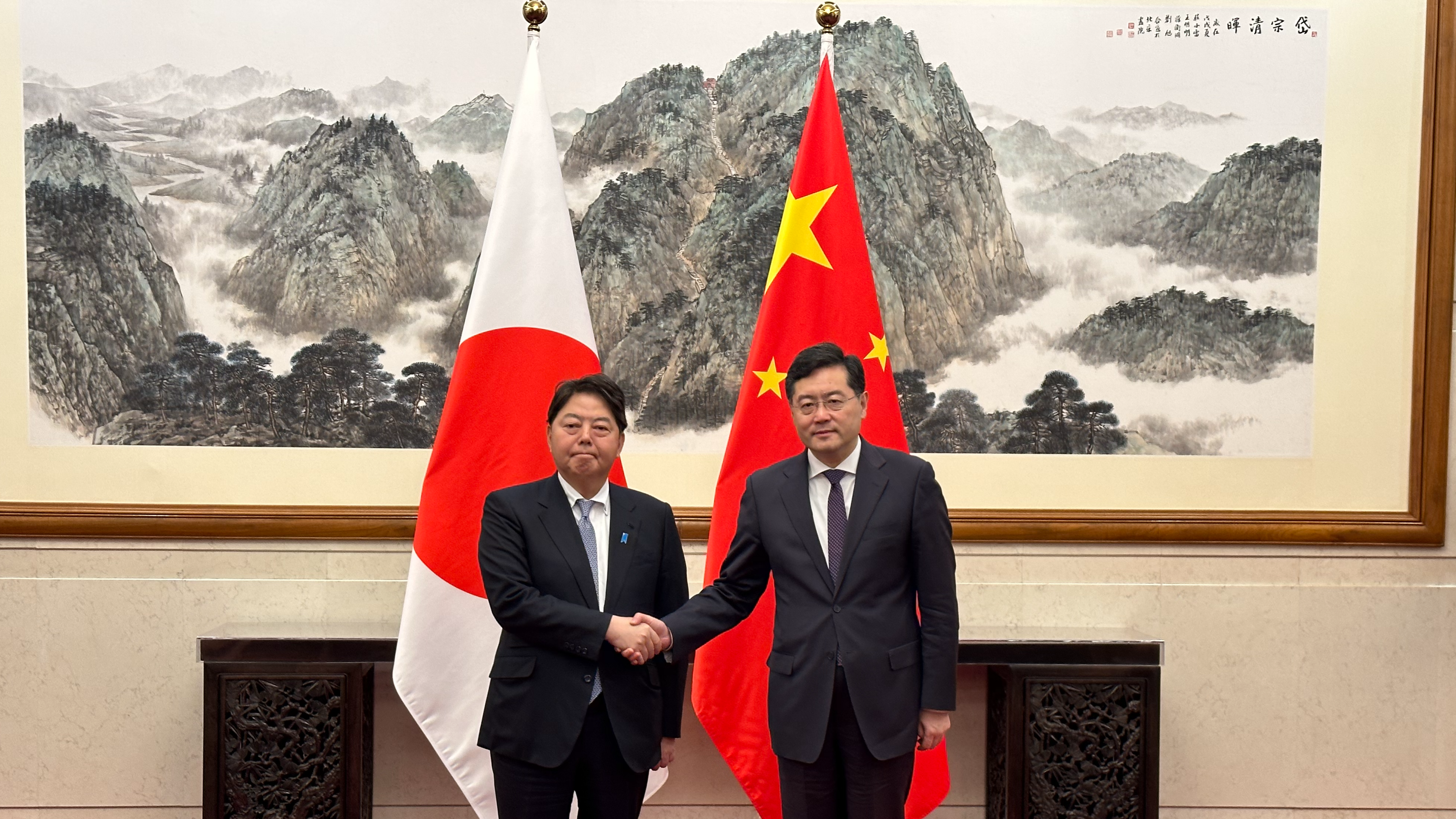 Chinese Foreign Minister Qin Gang met his Japanese counterpart Yoshimasa Hayashi, who is on a two-day visit to China. It's been three years since the last visit to China by a Japanese foreign minister. This year marks the 45th anniversary of the signing of China-Japan Treaty of Peace and Friendship.