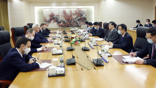 Chinese State Councilor and Foreign Minister Qin Gang on Monday met with Russian First Deputy Foreign Minister Vladimir Titov in Beijing. The two sides exchanged views on China-Russia relations and international and regional issues of common concern.