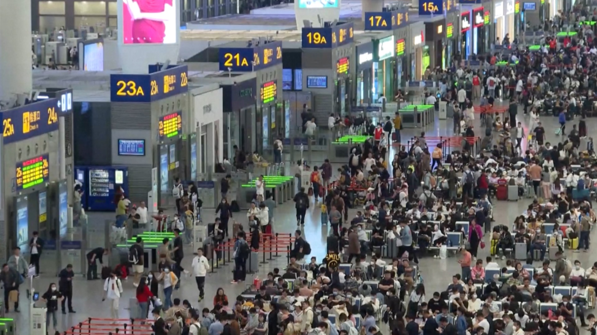 Passenger flow in China continued to operate at a high level on Day 2 of the five-day International Labor Day holiday. Airlines are expected to carry out 3,500 international passenger flights over the holiday, or 30 percent of pre-COVID levels. According to estimates, the Chinese civil aviation industry handled 16,371 domestic and international flights on Sunday, with the number of air passenger trips hitting 1.81 million. On the same day, domestic trips handled by China's railway system were expected to hit 18 million, with 11,217 passenger trains dispatched to handle the travel rush on the day.