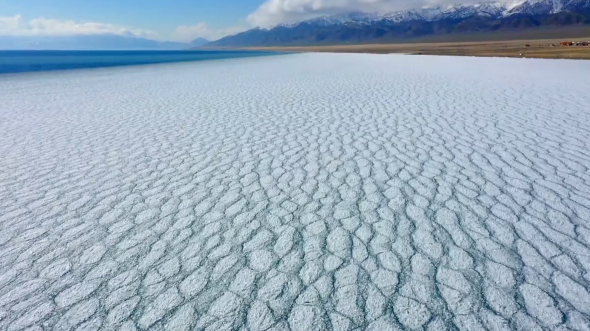 Sayram Lake is the largest and highest alpine lake in northwest China's Xinjiang Uygur Autonomous Region. With the temperature continuously rising these days, Sayram Lake has begun to thaw. Layers of thin ice are pushed to the side of the lake by the waves, presenting a stunning spectacle of an "ice shove." Typically, the lake freezes in late December and melts in May.